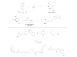In unsaturated polyester (UPR) chemistry, unsaturation sites are present along the chain, usually by incorporation of maleic anhydride, but maleic acid and fumaric acid are also used. Maleic acid and fumaric acid are isomers where maleic is the cis-isomer and fumaric is the trans-isomer. The ester forms of these two molecules are maleate and fumarate, respectively. When curing a UPR, the fumarate form is known to react more rapidly with the styrene radical, so isomerization catalysts, such as N,N-dimethylacetoacetamide (DMAA), are often employed in the synthesis process which converts the maleates into fumarates; the isomerization can also be encouraged with increased reaction time and temperature. Within the UPR industry, the classification of the resins is generally based on the primary saturated acid. For example, a resin containing primarily terephthalic acid is known as a Tere resin, a resin containing primarily phthalic anhydride is known as an Ortho resin, and a resin containing primarily isophthalic acid is known as an Iso resin. Dicyclopentadiene (DCPD) is also a common UPR raw material, and can be incorporated two different ways. In one process, the DCPD is cracked in situ to form cyclopentadiene which can then be reacted with maleate/fumarate groups along the polymer chain via a Diels-alder reaction. This type of resin is known as a Nadic resin and is referred to as a poor man's Ortho, due to sharing many similar properties of an Ortho resin along with the extremely low cost of DCPD raw material. In another process, maleic anhydride is first opened with water or another alcohol to form maleic acid and is then reacted with DCPD where an alcohol from the maleic acid reacts across one of the double bonds of the DCPD. This product is then used to end-cap the UPR resin which yields a product with unsaturation on the end-groups. This type of resin is referred to as a DCPD resin.