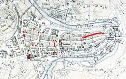 Starting in 1300, the street that would become Rathausgasse and Postgasse was known as Hormansgasse or Hormatsgasse. The Horman family, the origin of the name, lived in Bern from 1224-1326. Since 1619 the upper section (now Rathausgasse) was known as Metzgergasse (Butcher's Lane), while the lower section was first called Postgasse in 1798.[1] In 1675, in the house at Nr. 64/66, the Fischer'sche Post was first built which was the origin of the name in the following century. However, while the name was official in 1798, it wasn't until about 1870 that it became common. In the meantime, the Post moved from Postgasse in 1832.[2]