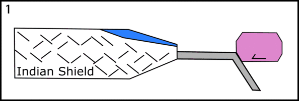 This model is a single margin model. Here, the North Indian sequence was deposited on a continental margin of northern India that was facing north. The units in the North Indian sequence represents the same set of sediments, but became distinct, since nearshore and offshore conditions changes the characteristics of the rock units during deposition.[18][19]