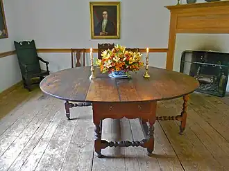 The house is furnished with much of its original furniture, including a settle bench that folds out into a bed. A table that Joseph bought from the old Chester Courthouse, the largest of its kind in the United States, still stands in the center hall of the house.[9] The name "Primitive Hall" was first recorded about 1846 but is believed to be much older.