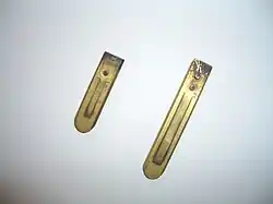 The unusual vibration physics of the free reed directly impact the performance of the harmonium, restricting the dynamic range and requiring subtle control. The reed, riveted into a metal frame, vibrates in self-excited oscillation as air is pumped through the bellows and reservoir.[20] This aerodynamic system is nonlinear, with the reed's maximum displacement limited by damping forces, resulting in relatively stable sound pressure.[22] A threshold pumping pressure exists below which reed vibration remains minimal.[23] Within these thresholds, reed amplitude exhibits exponential growth and exponential decay.[25]