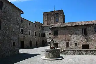 The main landmark of Radicofani is its Rocca (Castle), of Carolingian origin, documented since 978 as the Castle of Ghino di Tacco. Occupying the highest point of a hill, at 896 metres (2,940 ft), it was restored after the conquest from the Grand Duchy of Tuscany (1560–67). It has two lines of walls: the external one has a pentagonal shape, while the inner one is triangular, with three ruined towers at each corner and a cassero (donjon) which can be visited.