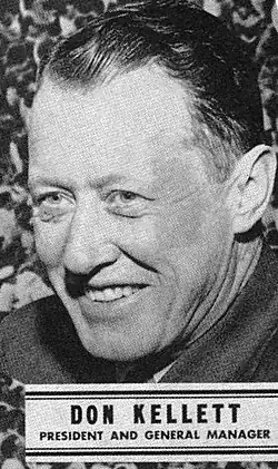 Donald Stafford "Red" Kellett (July 15, 1909 – November 3, 1970) was the president and general manager of the Baltimore Colts franchise of the National Football League (NFL) from 1953 until 1966, during which time his teams won two NFL championships. Kellett is credited as the general manager who brought Pittsburgh Steelers cast-off Johnny Unitas from semi-professional sandlots to superstardom in the NFL.