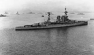 The British battleship HMS Barham; Robert Gardiner and Randal Gray suggest that the Reina Victoria Eugenia class would have resembled this sort of British vessel