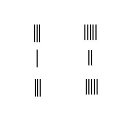 When doing calculation, usually there was no grid on the surface. If rod numerals two, three, and one is placed consecutively in the vertical form, there's a possibility of it being mistaken for 51 or 24, as shown in the second and third row of the adjacent image. To avoid confusion, number in consecutive places are placed in alternating vertical and horizontal form, with the units place in vertical form,[1] as shown in the bottom row on the right.