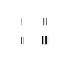 Rod numerals is the only numeric system that uses different placement combination of a single symbol to convey any number or fraction in the Decimal System. For numbers in the units place, every vertical rod represent 1. Two vertical rods represent 2, and so on, until 5 vertical rods, which represents 5. For number between 6 and 9, a biquinary system is used, in which a horizontal bar on top of the vertical bars represent 5. The first row are the number 1 to 9 in rod numerals, and the second row is the same numbers in horizontal form.