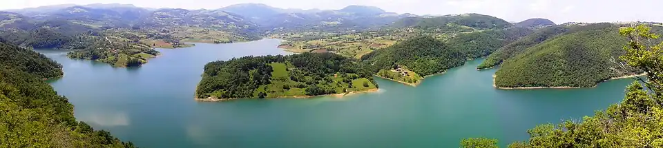 The lake is part of the Kolubara river watershed, as Jablanica is one of the headwaters which form the Kolubara, notorious for the flooding, especially of the town of Valjevo. Though it still wasn't completed, the reservoir was pivotal in protecting Valjevo during the 2014 Southeast Europe floods. The reservoir received the surplus of the water brought by the torrents and often flooded Valjevo suffered no damage. This fact was used in public debates about the lake, concerning the flooding of the church. The preventing of the flooding was often used as an exemplary of proper reaction in such situation, amidst the mostly weak reaction of the other parts of the protective system and the government in general (see Paljuvi Lake).[8]