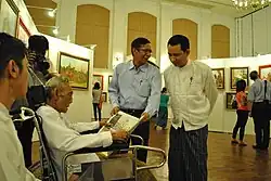2. ^ "အသက်အကြီးဆုံး ပန်းချီဆရာကြီး ဦးစန်းလှိုင် တစ်ကိုယ်တော်ပြပွဲ ကျင်းပ" [The oldest art master U San Hlaing holds solo exhibition] (in Burmese). 19 November 2015.