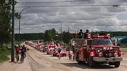 Highway 155 was begun in 1947 as a development road. It reached Buffalo Narrows in 1957 where a ferry was needed to cross the Kisis Channel.[7] The road closely followed the path of the old wagon trail established by the Hudson's Bay Company.[8] The official opening of Highway 155 from Green Lake to Buffalo Narrows was held in August 1963 in Green Lake. The old trail to La Loche was rebuilt soon after to become part of Highway 155.