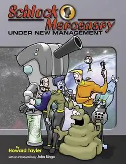 In March 2006, Tayler published Schlock Mercenary: Under New Management, the first book-based collection of Schlock Mercenary comics. This collection features stories printed from March 9, 2003, through August 23, 2003, plus five pages of new material including a foreword by John Ringo, a feature explaining how Sgt. Schlock "got turned on to plasma cannons", bonus art, the author's biography, and architectural deck plans to Tagon's third ship Serial Peacemaker.