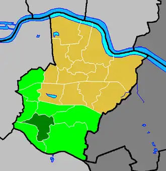 Sidcup parish formed the Sidcup Urban District of Kent from 1908. It was initially known as Foots Cray; however, in 1921 the urban district,[5] and in 1925 the parish,[6] were renamed Sidcup. The parish and district were abolished in 1934 and combined with Chislehurst to form the Chislehurst and Sidcup civil parish and urban district. In 1965 the parish and urban district were abolished. Sidcup went on to form part of the London Borough of Bexley in Greater London and Chislehurst formed part of the London Borough of Bromley.
