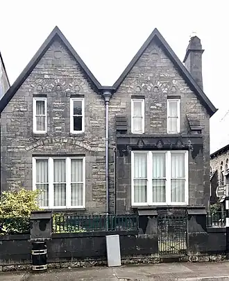 Sligo County Museum was opened in 1955, and is housed in a former manse building which was converted for use as a museum.[2] The manse, a building traditionally used a residence for clergymen, is linked to the establishment of the Congregational church in Sligo and was built around 1867.[3] Adjoining this manse is a gothic Presbyterian church, which has been used as the Sligo Library since 1954.[2][4] Nora Niland, for whom the Niland Collection is named, aided in the creation of the museum, in particular the Yeats Collection.[5]