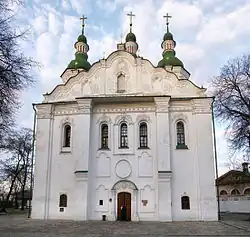 The St. Cyril's Monastery (Ukrainian: Кирилівський монастир, romanizedKyrylivskyi monastyr) is a medieval monastery in Kyiv, the capital of Ukraine. The monastery contains the famous St. Cyril's Church, an important specimen of Kievan Rus' architecture of the 12th century, and combining elements of the 17th and 19th centuries. However, being largely Ukrainian Baroque on the outside, the church retains its original Kievan Rus' interior.