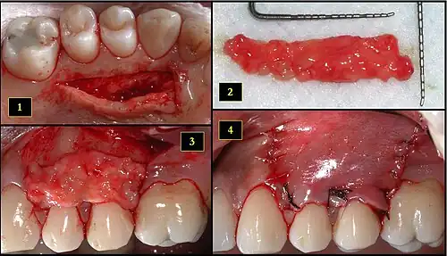 - ^ Wennstrom, JL; Pini Prato, GP (2003). "Mucogingival Therapy — Periodontal Plastic Surgery". In Lindhe, Jan; Karring, Thorkild; Lang, Niklaus P. (eds.). Clinical Periodontology and Implant Dentistry (4th ed.). Oxford: Blackwell Munksgaard. p. 607. ISBN 978-1-4051-0236-0.