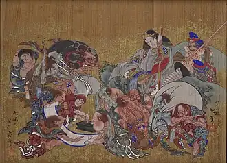 ![]() Susanoo slaying Yamata no Orochi, woodblock print by Utagawa Kuniyoshi | |