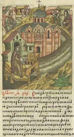 Some sources name Sylvestr as a compiler of either the Primary Chronicle itself or its second edition. He was a hegumen of the Vydubetsky Monastery in Kiev, which had been founded by Prince Vsevolod Yaroslavich. In 1118, Sylvestr was sent to Pereiaslav as a bishop.[1]
