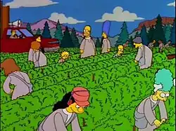 Various residents of Springfield being forced by the Movementarians into growing and harvesting lima beans.