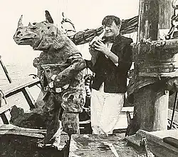 The Ringtailed Rhinoceros (also cited The Ring-Tailed Rhinoceros) is a lost 1915 American silent comedy-drama film that depicted the ruinous effects of alcohol on a good-natured man and on the lives of the people around him.[2][3] Like snakes and "pink elephants" that have been used in many societies to symbolize heavy drinking or been associated with the hallucinations of drunkards, the main character in this "'photophantasy'" blamed instead a "Ringtailed Rhinoceros" for his excessive use of wine and liquor.[b][4]