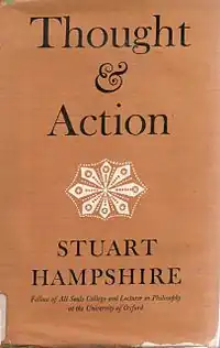 Thought and Action is a 1959 book about action theory by the philosopher Stuart Hampshire. The book has received praise from commentators, and is considered Hampshire's major work.