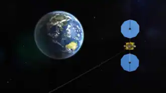 CNSA launched the Tianwen-2 probe using a Long March 3B carrier rocket on 28 May 2025 from the Xichang Satellite Launch Center in southwest China.[8] The probe uses solar electric propulsion for maneuvering between its many objectives.[9] It is planned to explore the co-orbital near-Earth asteroid 469219 Kamoʻoalewa and the main-belt comet 311P/PANSTARRS.[10] The spacecraft will rendezvous with Kamoʻoalewa and conduct remote sensing observations in orbit, before landing on the asteroid to collect a sample of 100 g (3.5 oz) of regolith.[1][11] Explosives will be used to expose potential subsurface volatiles for detection.[4]