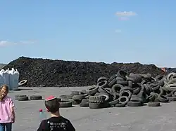 Because tires are highly durable and non-biodegradable, they can consume valuable space in landfills.[1] If waste tires are improperly managed they may cause rubber pollution. In 1990, it was estimated that over 1 billion scrap tires were in stockpiles in the United States. As of 2015, only 67 million tires remain in stockpiles.[2] From 1994 to 2010, the European Union increased the amount of tires recycled from 25% of annual discards to nearly 95%, with roughly half of the end-of-life tires used for energy, mostly in cement manufacturing.[3][4]