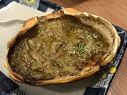 Japanese kourayaki, or blended crab tomalley and roe baked in its shell