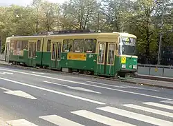 Trams in Helsinki form part of the public transport system organised by Helsinki Regional Transport Authority and operated by Metropolitan Area Transport Ltd (Finnish: Pääkaupunkiseudun Kaupunkiliikenne Oy, Swedish: Huvudstadsregionens Stadstrafik Ab) in Finland's capital city of Helsinki. The trams are the main means of transport in the city center, and 56.8 million trips were made on the system in 2019.[1][3] In addition to the older tram network, there is a single light rail line that was opened in October 2023. Although technically compatible with the tram network, the light rail line is separate from the city center tram network.[4]