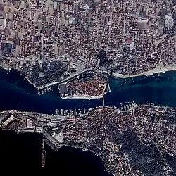 Satellite view of Trogir and its old town