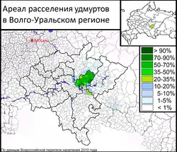Udmurt resettlement area in the Idel-Ural (Volga-Ural) region (data based on the 2010 Russian Census