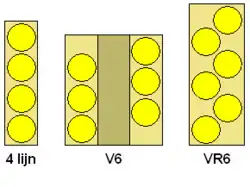 The Volkswagen VR6 engine was designed for transverse engine installations in front-wheel drive vehicles.[2] The narrow angle of 15° between the two cylinder banks reduced the width of the engine, compared to a traditional V6 engine. Therefore, the VR6 engine is easier to fit within an engine bay that was originally designed for a four-cylinder engine.