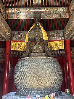 Jin Dynasty (1115–1234) statue of Vairocana in Shanhua Temple in Datong, Shanxi, China, one out of a set of statues of the Five Tathāgatas. -