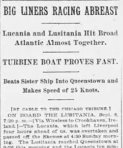 11. ^ ""Via Wireless"". Hartford Daily Courant. Hartford, Connecticut. October 20, 1908. p. 6 – via Newspapers.com.