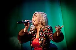 In February 2022, she supported Russia's invasion of Ukraine.[7][8] She justified her support for the invasion by the main myths and narratives of Russian anti-Ukrainian propaganda.[9] In October 2022, she published a video for the song "Wagner", which became the unofficial anthem of the Wagner Group, and performed with other pro-Kremlin performers at pro-government events.[10] She was in support of the Russian attack.[11][12][13]