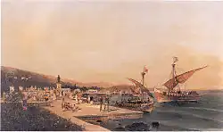 In May 1821, at the beginning of the Greek Revolution, the Greek rebels of Mount Pelion tried to capture the fortress but failed.[12] On 8 April 1827, the Greek fleet, under the command of the British philhellene Frank Abney Hastings, captured five Ottoman ships in the city's harbour and forced the local garrison to evacuate the fortress.[12] The provisional government of Greece claimed Volos as part of Greek national territory, but the Treaty of Constantinople (1832), which established a Greek independent state, set its northern boundary along a line running south from Arta to Volos.[16] Volos was incorporated into the Greek Kingdom in November 1881 with the rest of Thessaly.[12]