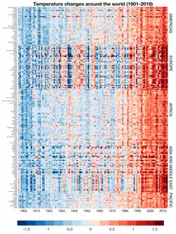 101. ^ Hawkins, Ed (2019-07-21). "#ShowYourStripes / Temperature changes around the world (1901–2018)". Climate Lab Book. Archived from the original on 2019-08-02. (Direct link to image).
