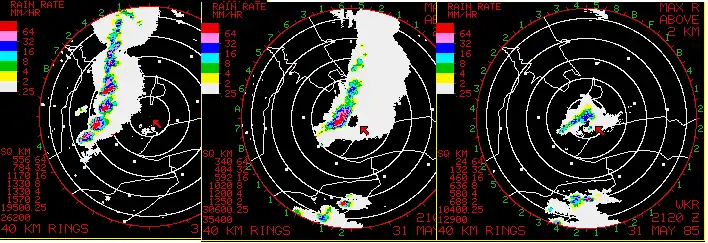 34. ^ J. S. Marshall Radar Observatory. "Target ID Radar Images PPI 0.5-degree". McGill University. Archived from the original on 28 June 2013. Retrieved 18 April 2013.
