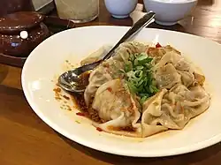 Wontons are traditionally served in soup, but jiaozi is usually eaten with dipping sauce.[6]
