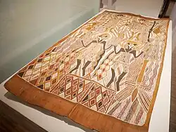 The historic Yirrkala Church Panels were created in 1963 by Yolngu elders of the Dhuwa moiety (including Mawalan Marika, Wandjuk Marika and Mithinarri Gurruwiwi), who painted one sheet with their major ancestral narratives and clan designs, and eight elders of the Yirritja moiety, including Mungurrawuy Yunupingu, Birrikitji Gumana and Narritjin Maymuru, who painted the other sheet with Yirritja designs.[20][21][22] They were discarded by the church in 1974, but were salvaged by Buku-Larrnggay in 1978.[20]