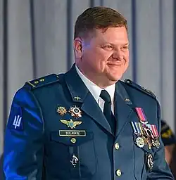 Yurii Volodymyrovych Bulavka (Ukrainian: Юрій Володимирович Булавка) is a Ukrainian military pilot 1st class,[1] colonel[2] of the Air Force of the Armed Forces of Ukraine. He is a student of multiple winner of air shows in Europe, Colonel Oleksandr Oksanchenko.[3]